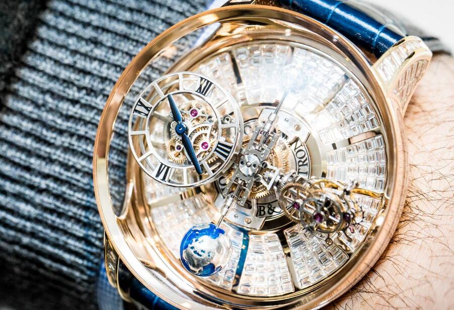 Efficient Winding System: Employing a Carbon TPT® carbon fiber and white gold rotor with a OneWay® ceramic ball bearing winding system, the mainspring barrel is wound efficiently while maintaining a compact size for this ultra-thin skeletonized movement.replica Franck Muller Curvex CX